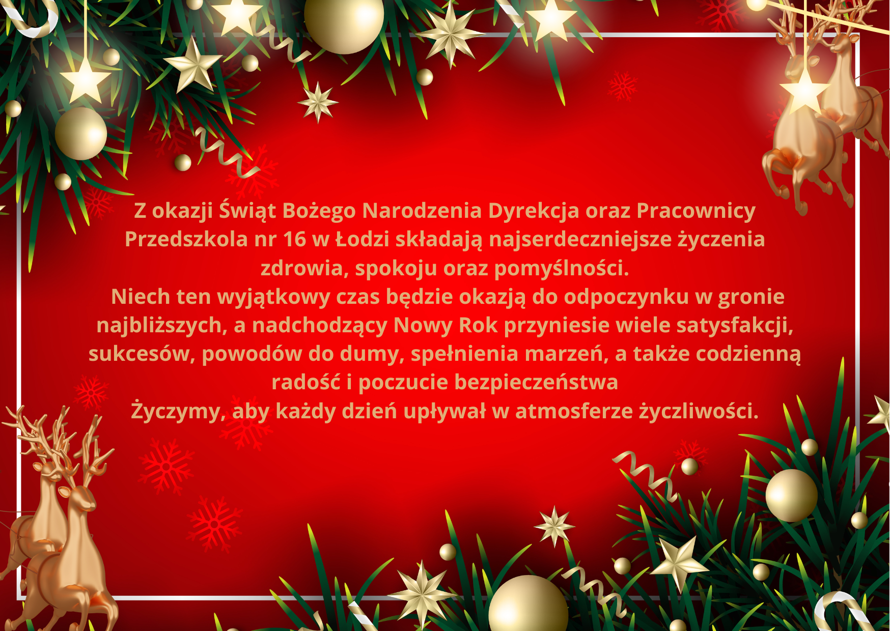 Spokojnych, radosnych i rodzinnych Świąt Boźego Narodzenia, wszelkiej pomyślności w Nowym Roku oraz spełnienia marzeń. Niech ta magia świąt trwa przez cały rok.