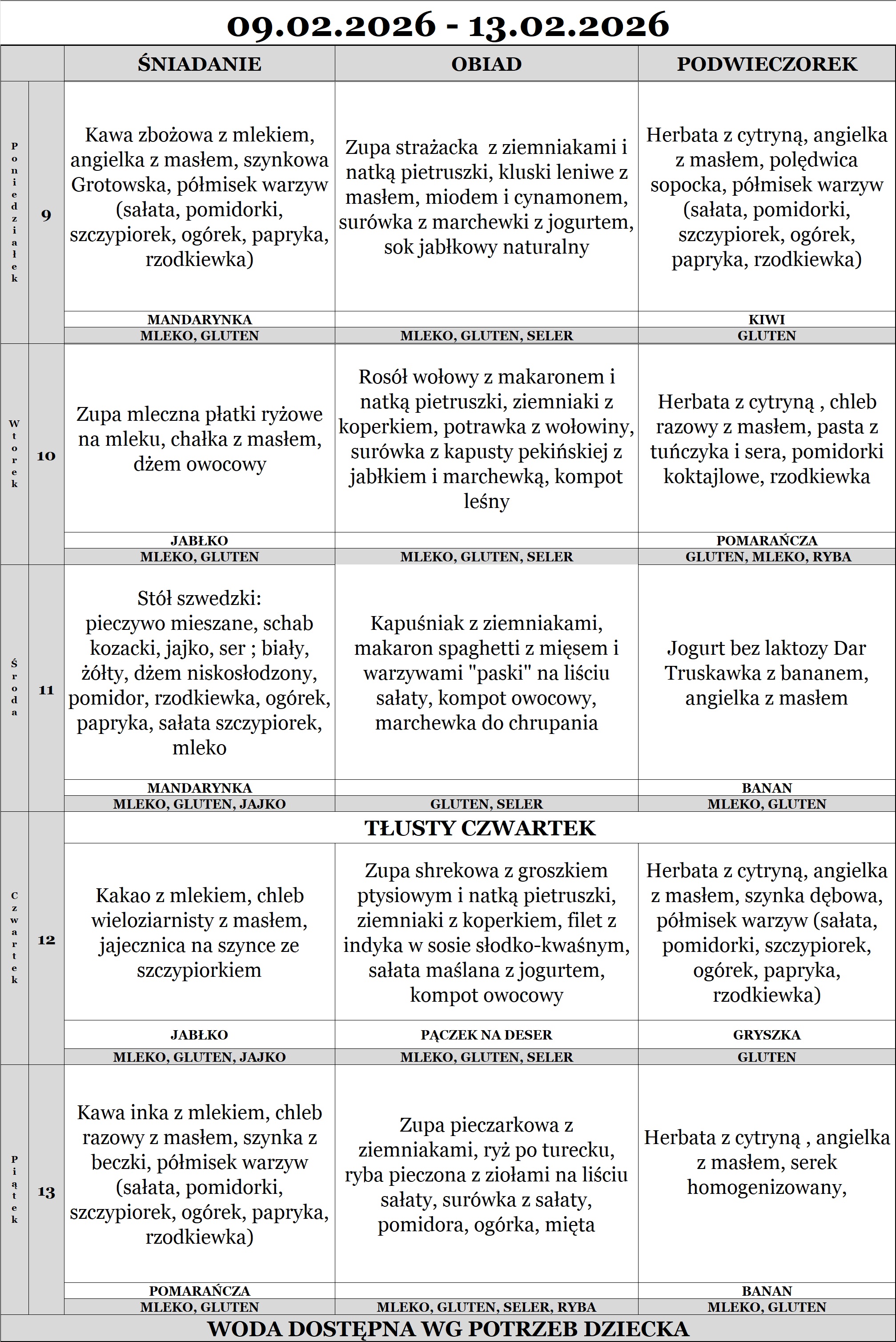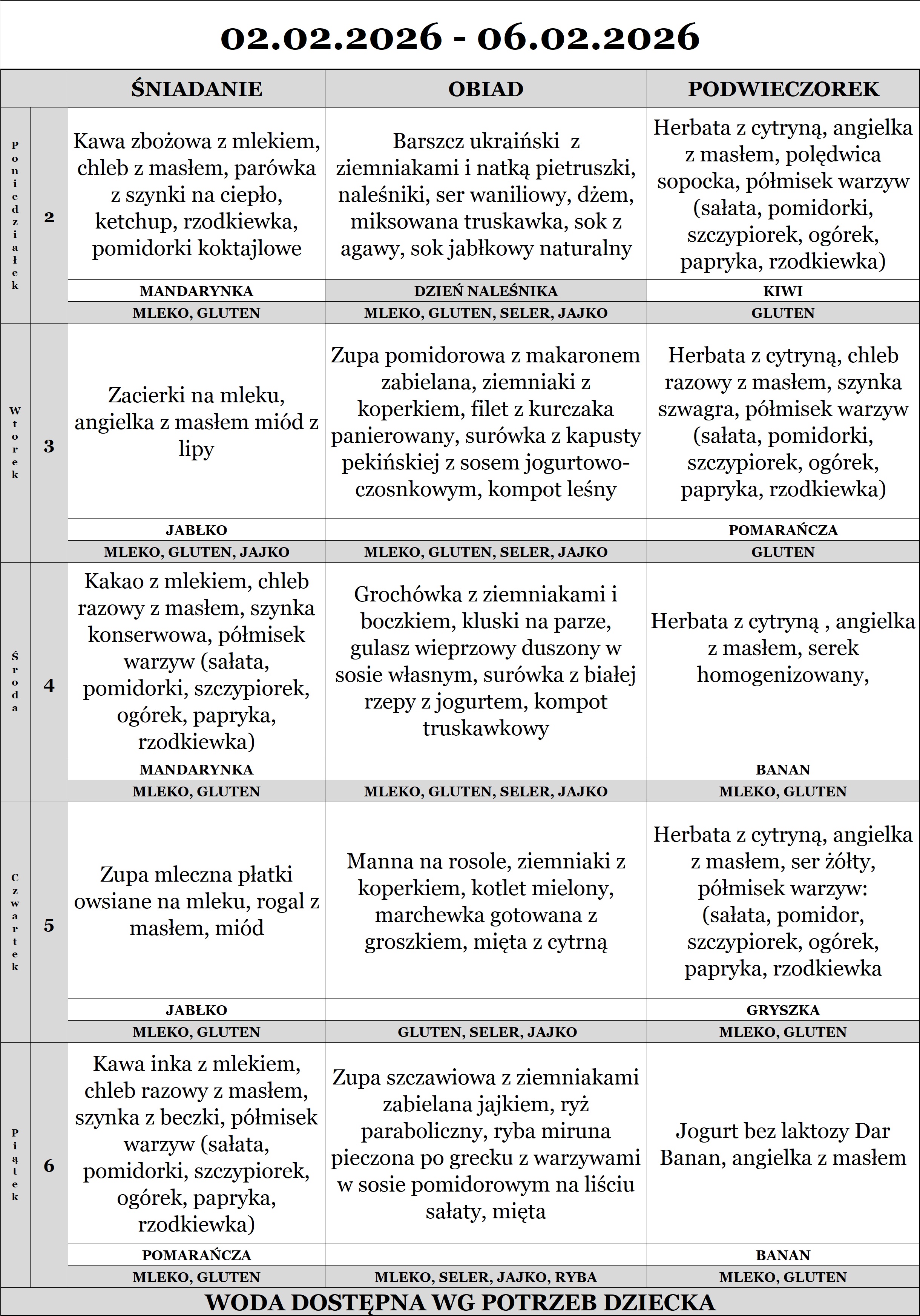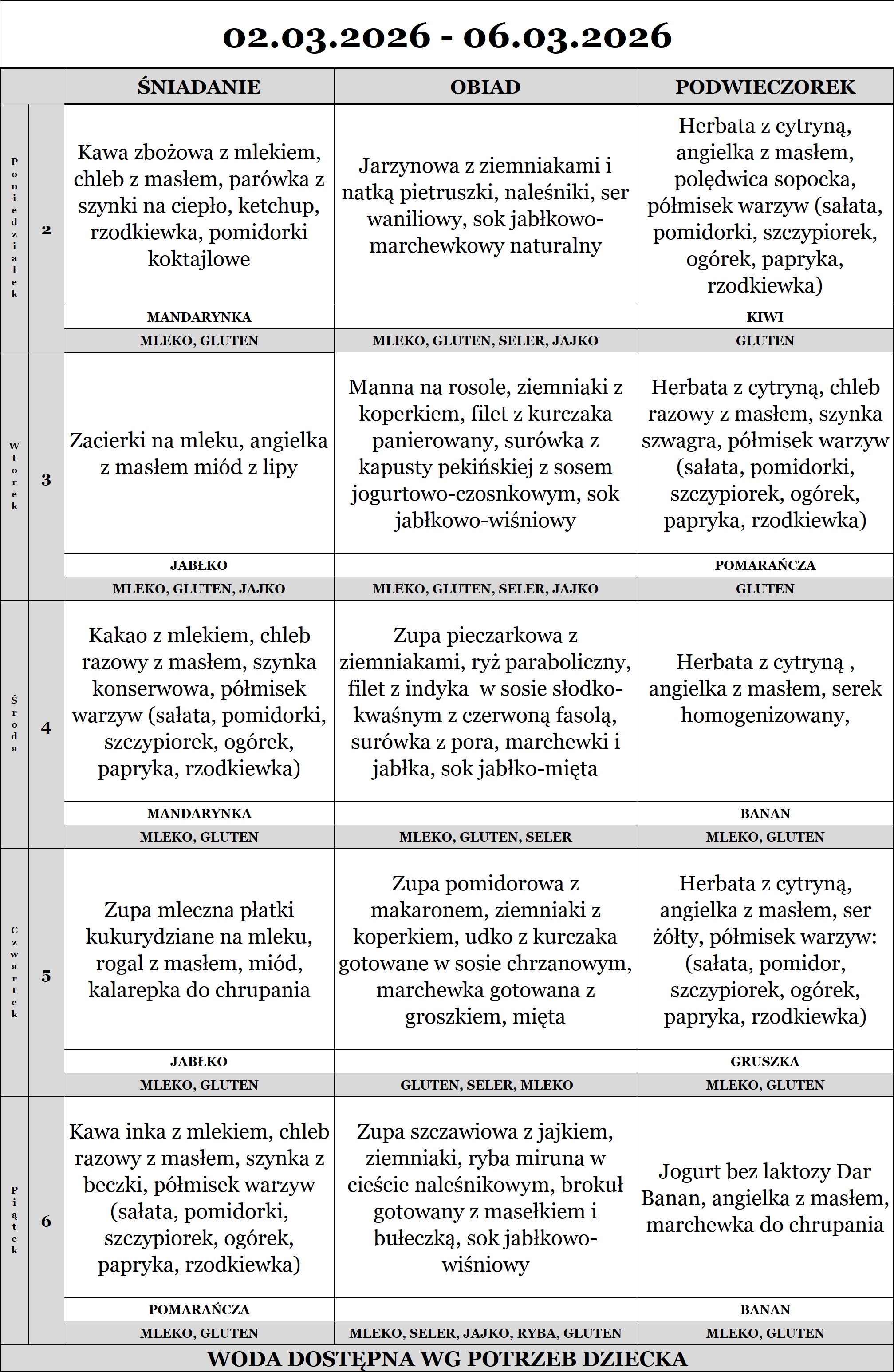 Jadłospis może ulec zmianie z przyczyn od nas niezależnych