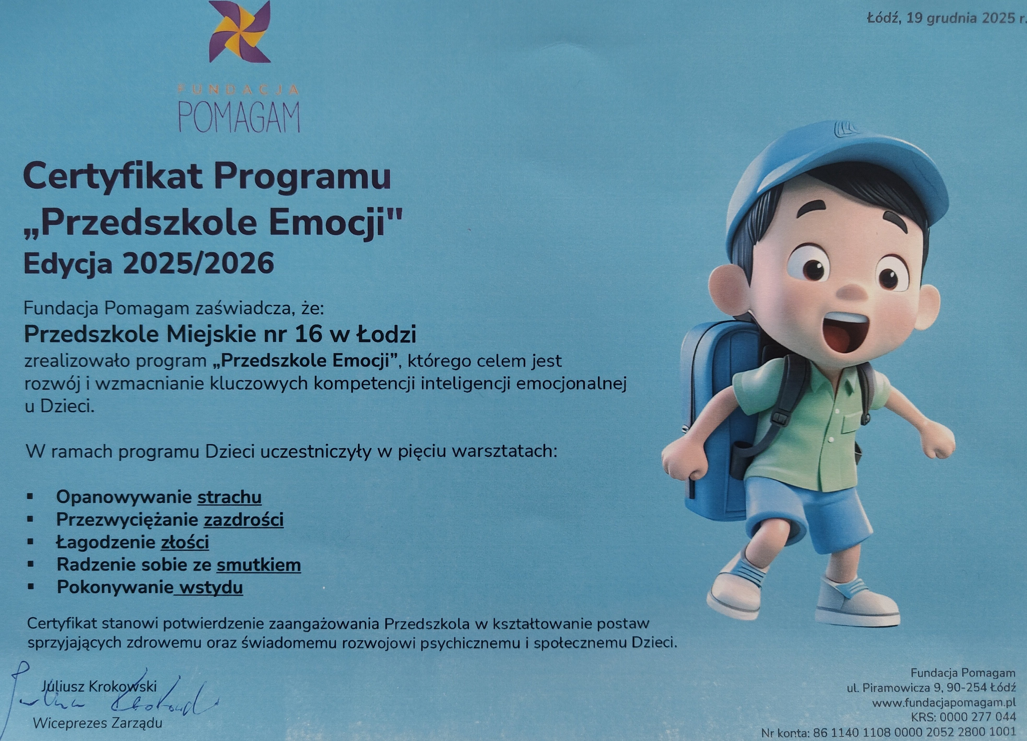 Nowatorski program rozwoju inteligencji emocjonalnej dzieci w wieku przedszkolnym. Realizowany w pełni bezpłatnie, w publicznych przedszkolach i zaprojektowany tak, aby prawdziwie praktycznie zwiększać kompetencje emocjonalne dzieci.