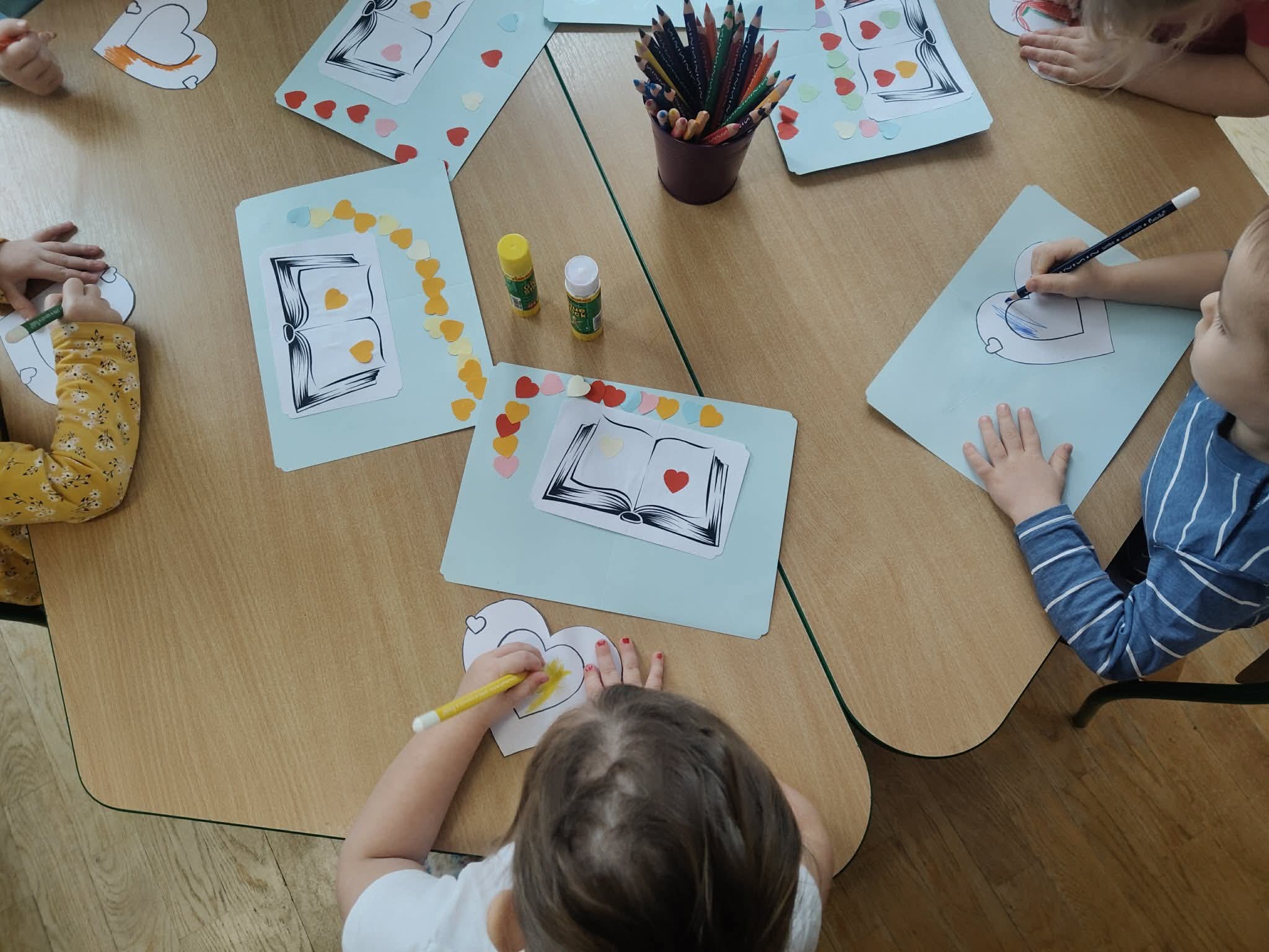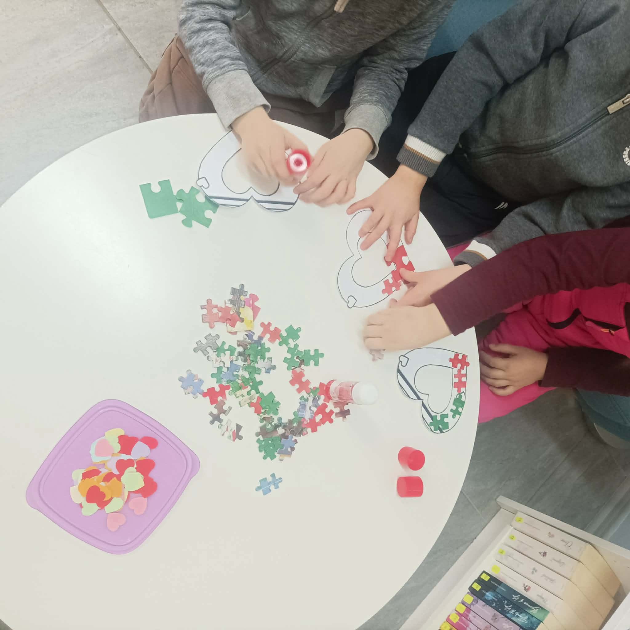 Dziś dzieci z młodszych grup naszego przedszkola wzięły udział w wyjątkowych warsztatach walentynkowych przeprowadzonych przez Panią z Biblioteki mieszczącej się przy ulicy Motylowej. Podczas zajęć miały okazję wysłuchać ciekawej opowieści oraz wziąć udział w kreatywnych aktywnościach związanych z tematyką Walentynek. Starsze grupy natomiast wybrały się z wizytą do biblioteki, gdzie również uczestniczyły w przygotowanych z tej okazji zajęciach.