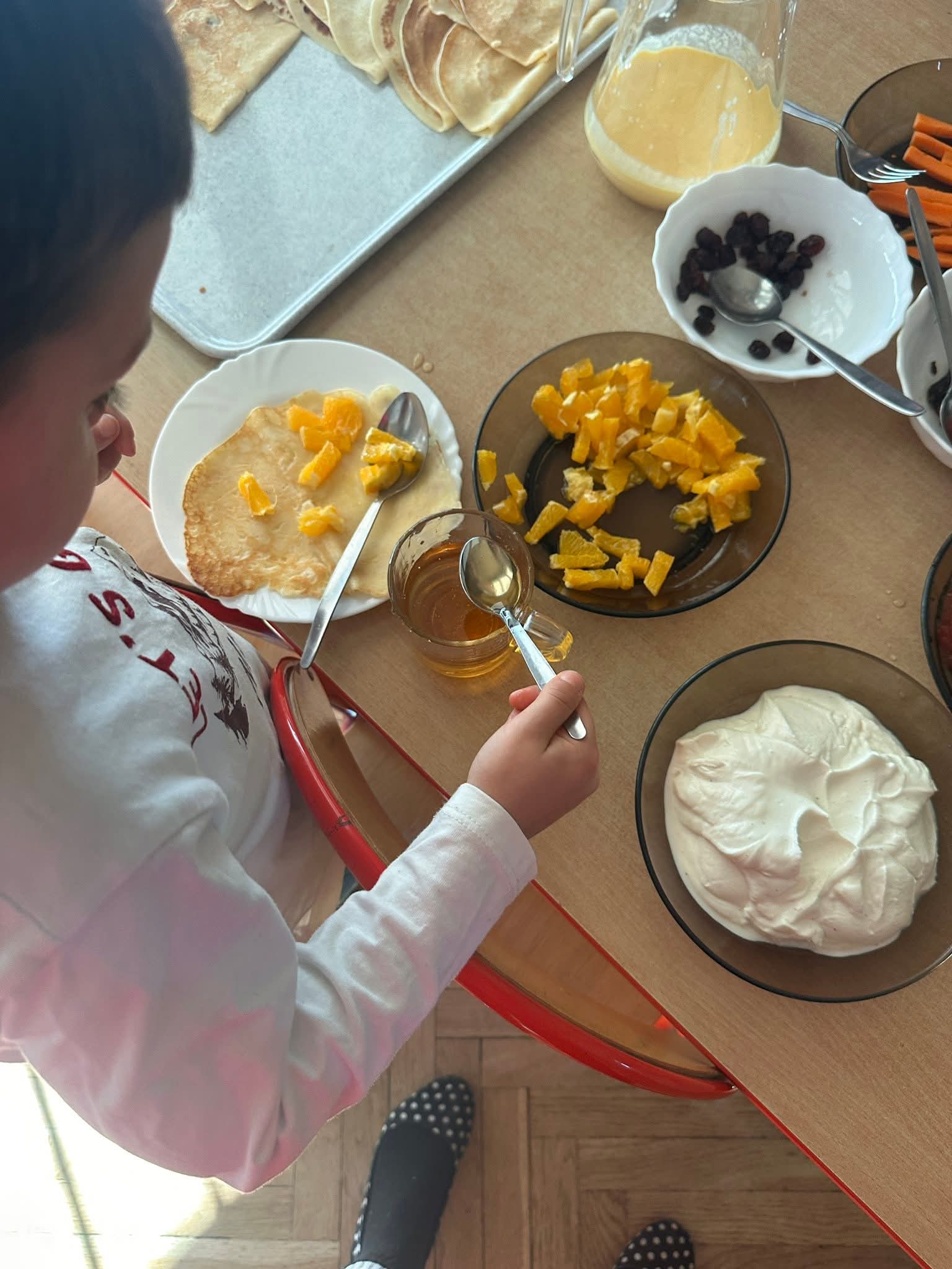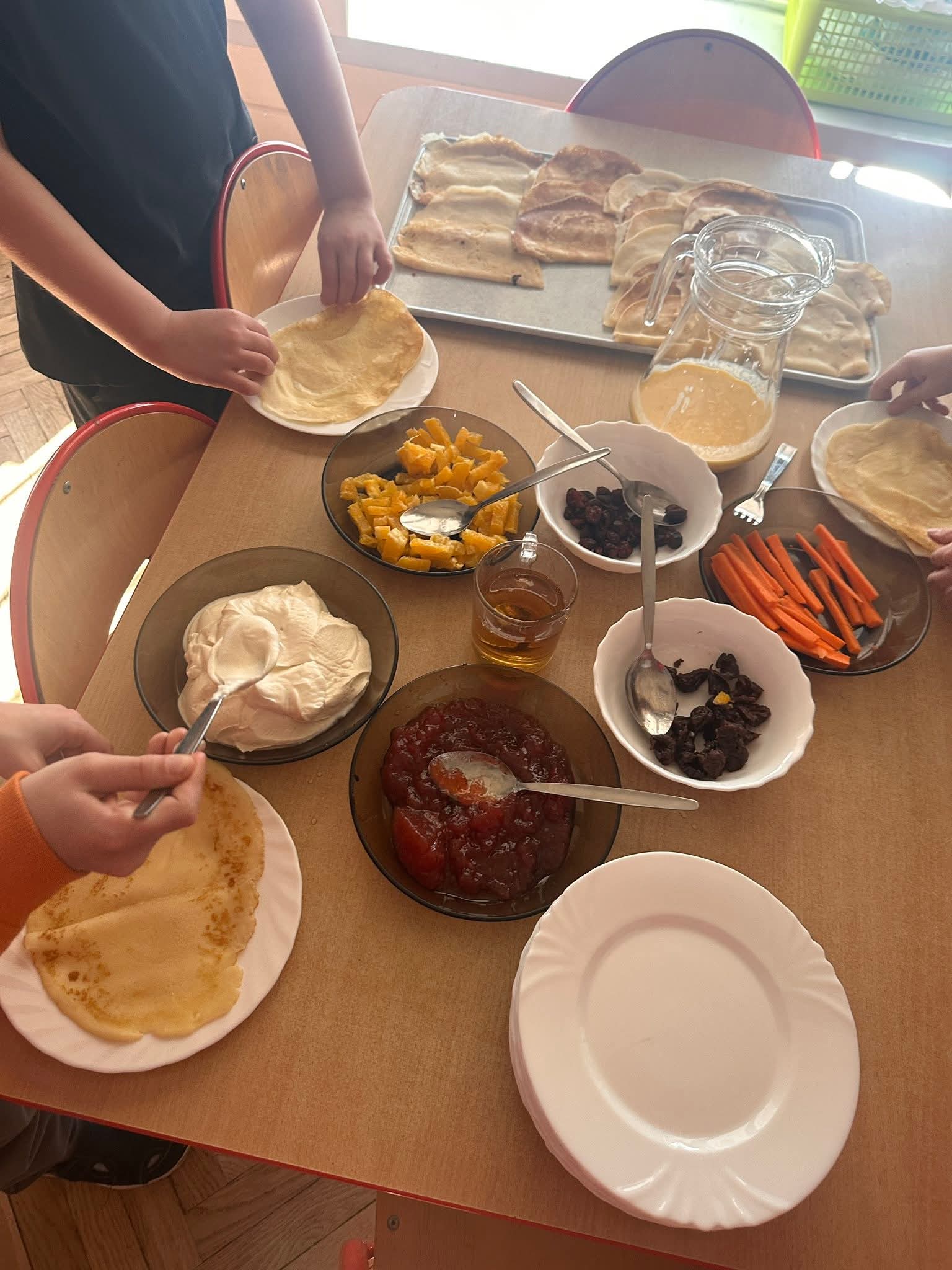 Dzień naleśnika to wspaniała okazja to zajęć plastyczno-sensorycznych. Nasze dzieci uczyły się o zdrowym żywieniu i dobrej współpracy. A na koniec najlepsze - degustacja własnoręcznie przygotowanych naleśników która wzbudziła wiele radości.