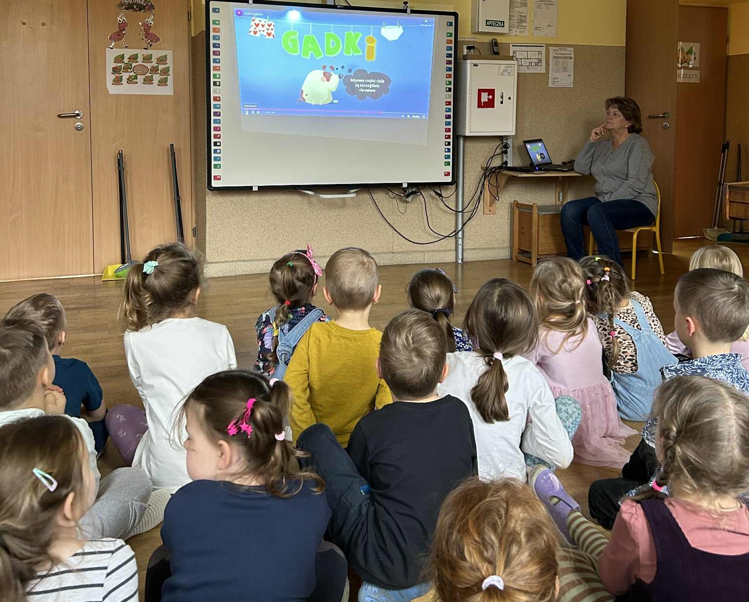 "GADKI z psem" to zajęcia mające na celu nauczyć dzieci zasad, które mogą pomóc ochronić je przed wszelakim wykorzystywaniem, również na tle seksualnym, a także rozwijać umiejętności rozpoznawania sytuacji trudnych, niebezpiecznych oraz jak na nie reagować. Zajęcia te zostały przeprowadzone we wszystkich grupach w naszym przedszkolu pod okiem naszej Pani pedagog.
