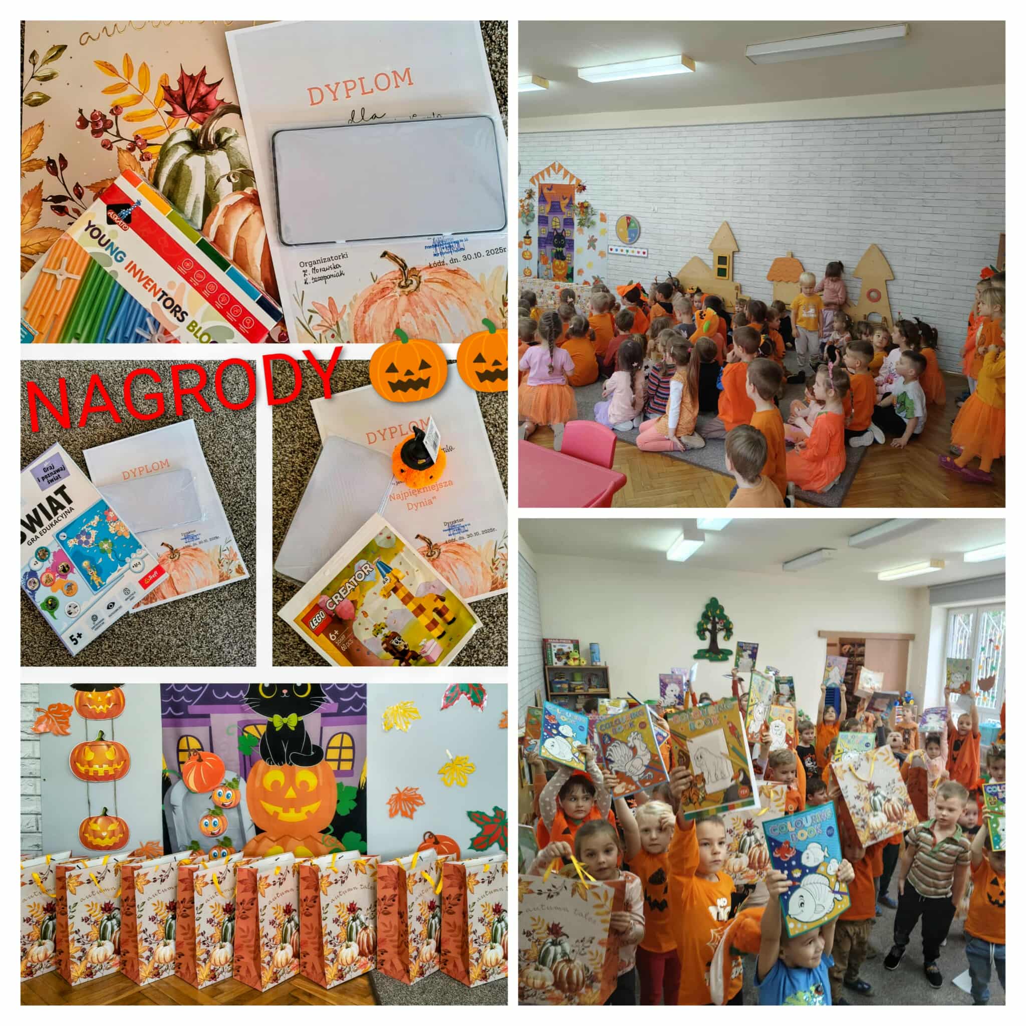 Już od tygodnia w naszym przedszkolu trwał konkurs na "Najpiękniejszą Dynie". Dzieci wraz z rodzicami miały za zadanie ozdobić prawdziwą dynię przy użyciu różnych materiałów i technik. Wszystkie dynie były bardzo ładne i pomysłowe.Dziękujemy wszystkim uczestnikom za poświęcony czas i tak liczny udział w konkursie.
