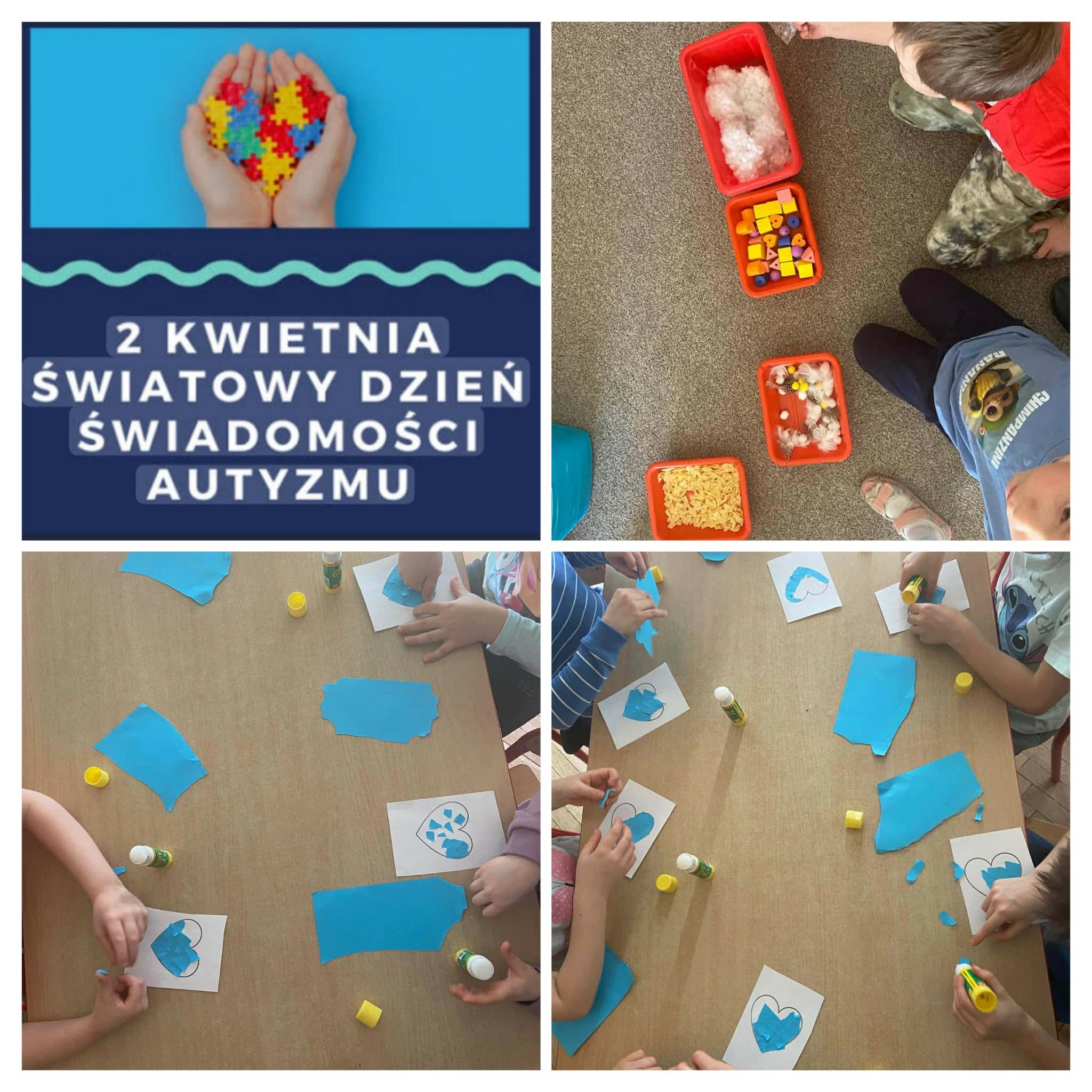 2 kwietnia w naszym przedszkolu obchodziliśmy Światowy Dzień Świadomości Autyzmu. Tego dnia dzieci uczyły się o różnorodności oraz o tym, że każdy z nas może inaczej postrzegać świat. Dowiedziały się, że nasz mózg interpretuje otoczenie poprzez zmysły. Przedszkolaki miały również okazję przejść ścieżkę sensoryczną, która pozwoliła im lepiej zrozumieć, jak różne bodźce wpływają na nasze odczucia. Poznaliśmy także znaczenie koloru niebieskiego, który symbolizuje solidarność z osobami neuroróżnorodnymi. Na znak wsparcia dzieci stworzyły piękne, niebieskie serduszka. To był dzień pełen ważnych rozmów, empatii i wspólnego odkrywania świata.